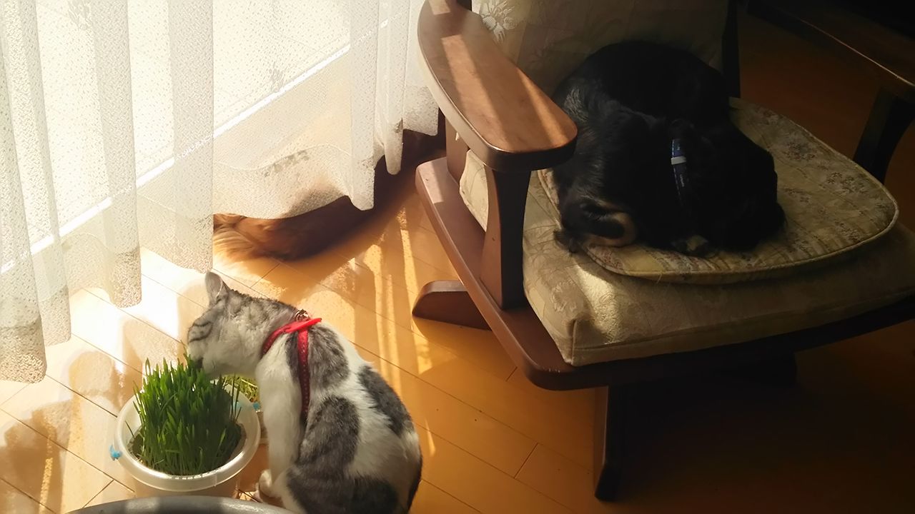 いち君が どてっと座って動いてないのは どうせ最後にしかくれないのを知ってるから・・・