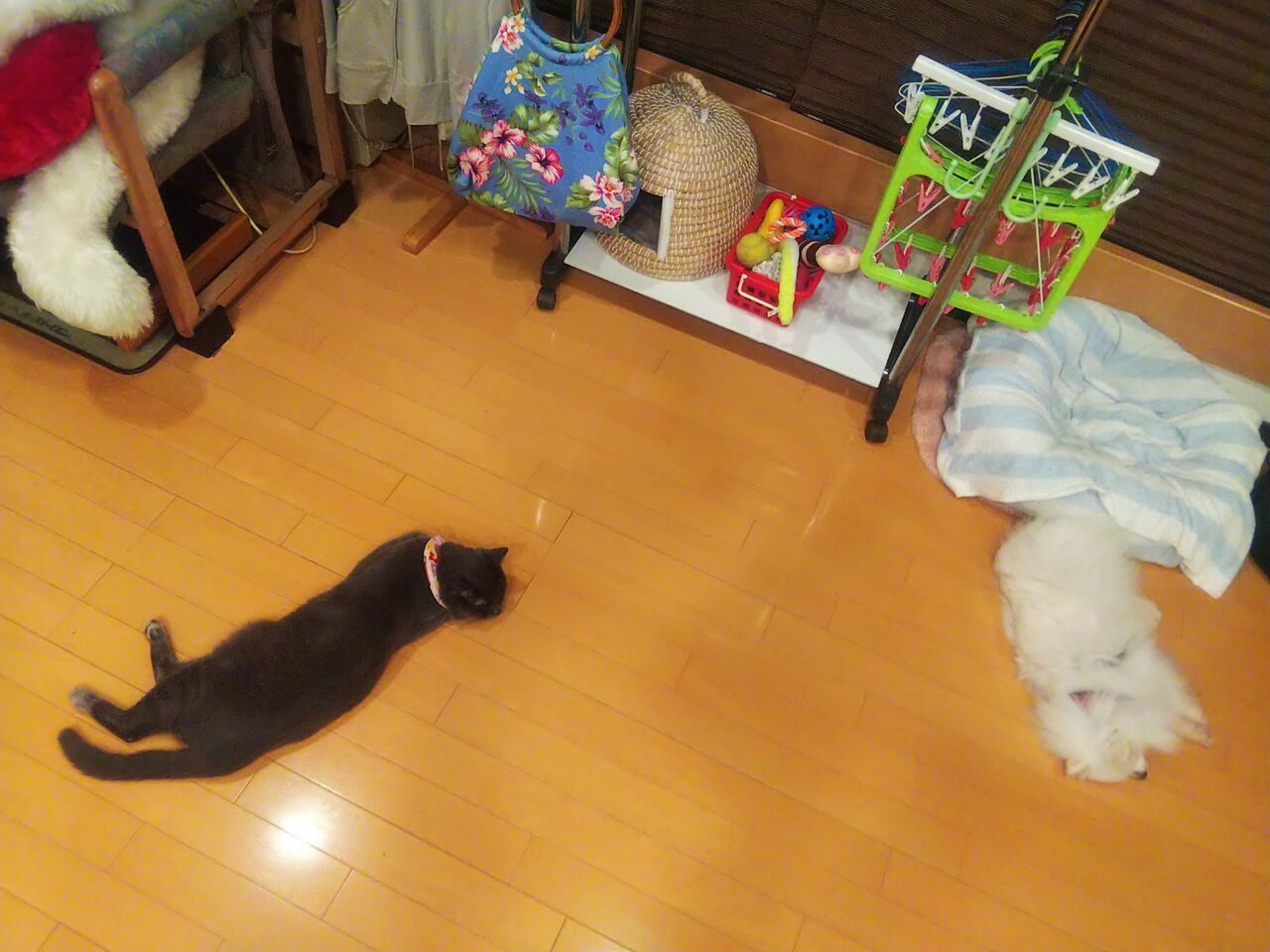 夢ちゃんが冷蔵庫前でコロン